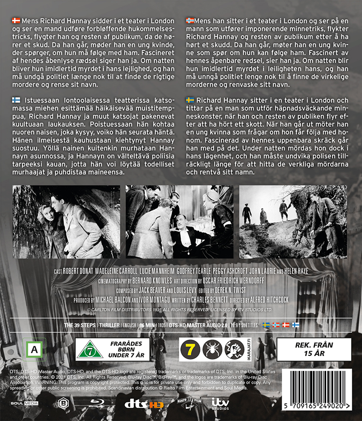 | Skådespelare | Robert Donat, Madeleine Carroll, Lucie Mannheim |