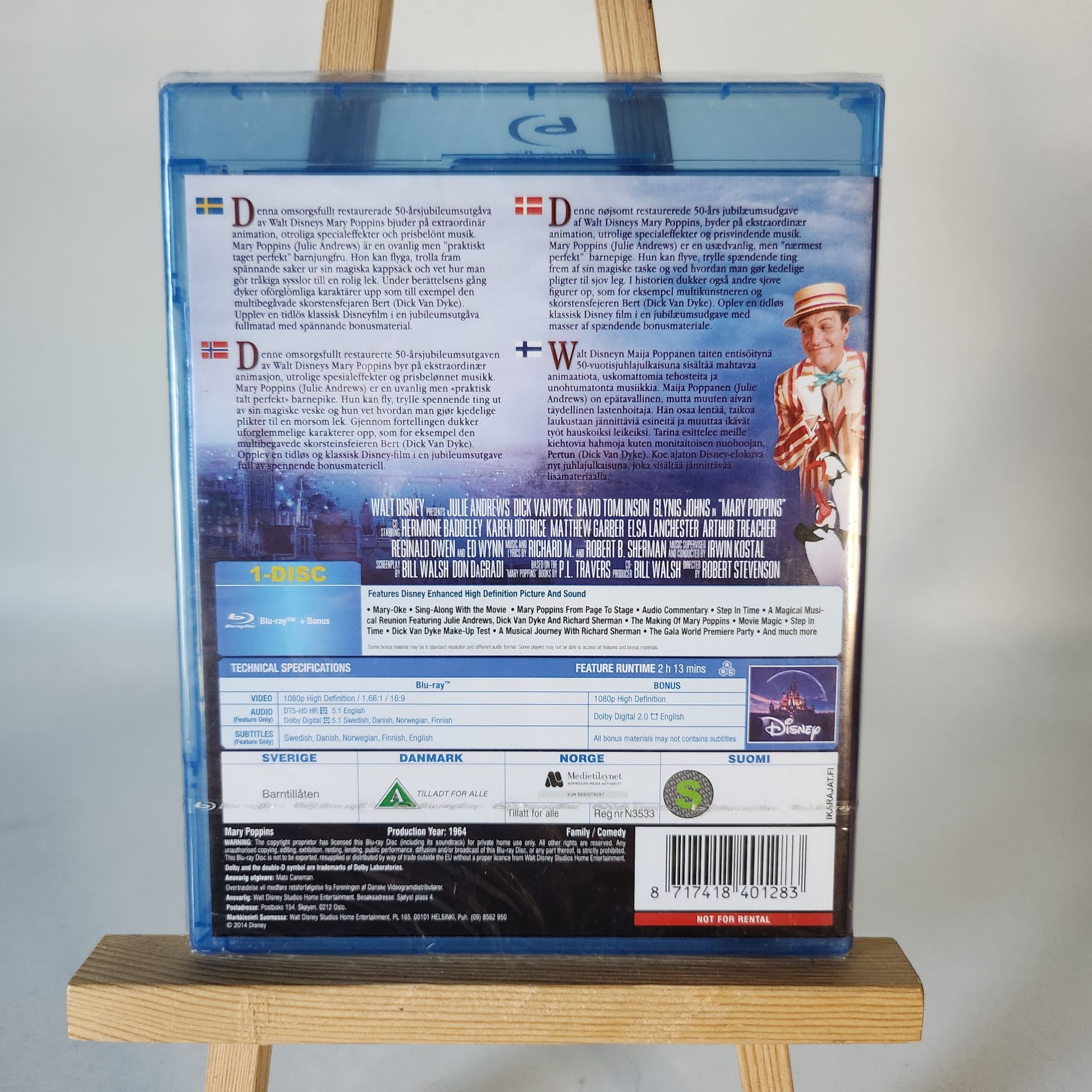 Denna omsorgsfullt restaurerade 50-årsjubileumsutgåva av Walt Disneys Mary Poppins bjuder på extraordinär animation, otroliga specialeffekter och prisbelönt musik. Mary Poppins (Julie Andrews) är en ovanlig men ”praktiskt taget perfekt” barnjungfru. Hon kan fl yga, trolla fram spännande saker ur sin magiska kappsäck och vet hur man gör tråkiga sysslor till en rolig lek. Under berättelsens gång dyker oförglömliga karaktärer upp som till exempel den multibegåvade skorstensfejaren Bert (Dick Van Dyke). Upplev en tidlös klassisk Disney fi lm i en jubileumsutgåva fullmatad med spännande bonusmaterial.